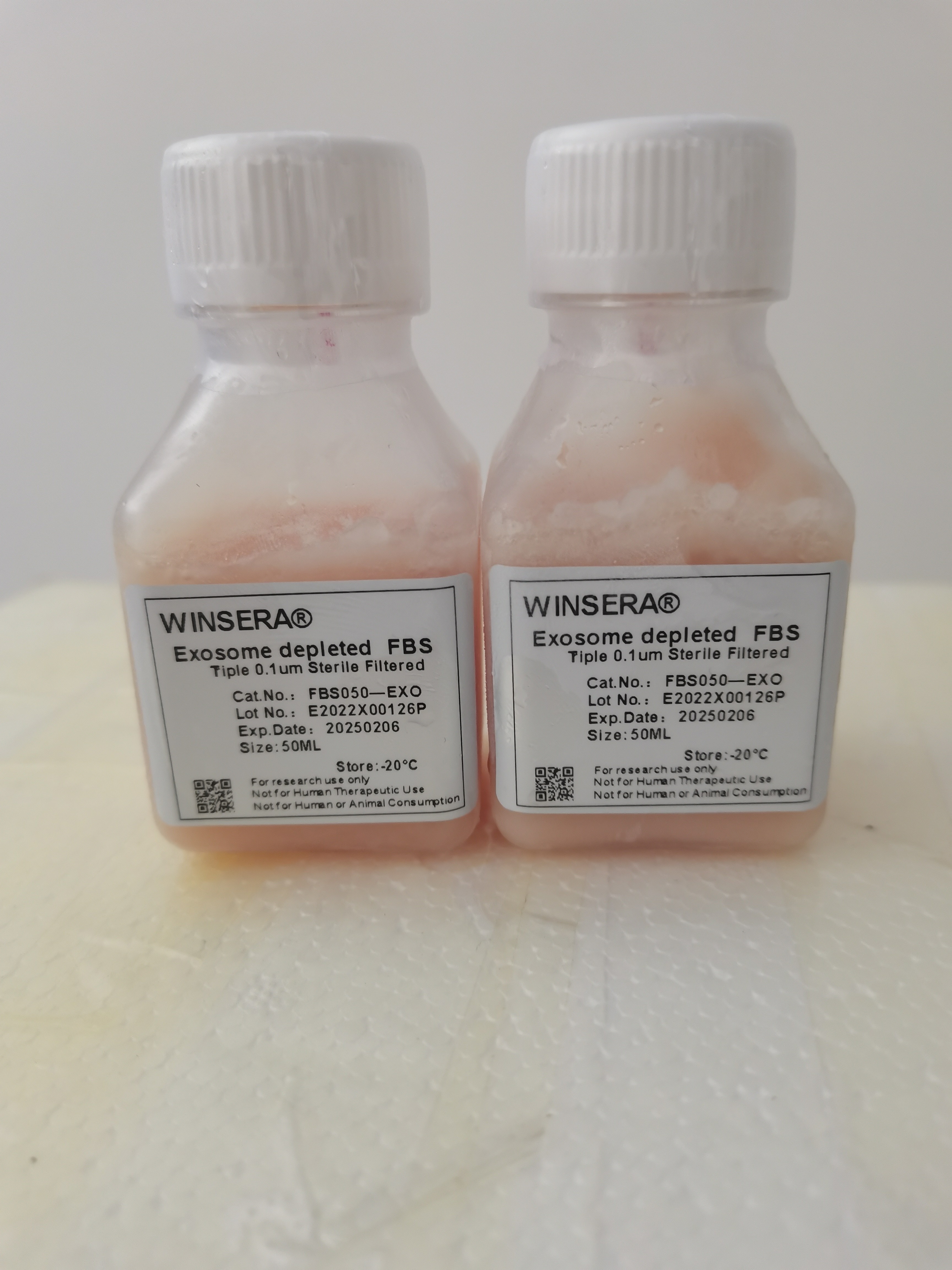 胎牛血清,以其能為細(xì)胞生長(zhǎng)提供重要的營養(yǎng)及生長(zhǎng)物質(zhì)而成為細(xì)胞*培養(yǎng)基中不可少的添加成分,然而,普通胎牛血清中因含有大量的牛源外泌體會(huì)對(duì)體外培養(yǎng)的組織或細(xì)胞分泌的外泌體研究造成干擾,影響科學(xué)的實(shí)驗(yàn)結(jié)果。因此,我們?cè)诳偨Y(jié)大量外泌體相關(guān)文獻(xiàn)并對(duì)比各種血清外泌體去除方法后,優(yōu)化出一種*佳的去除血清外泌體的處理方法。